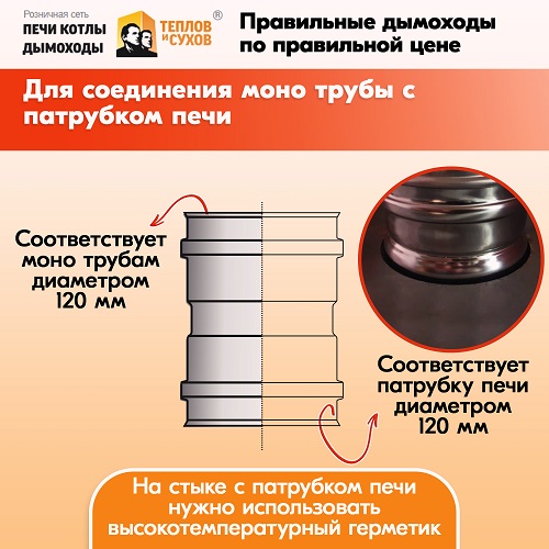 Переходник печной трубы от Теплов и Сухов герметичен и в процессе эксплуатации не лопается.