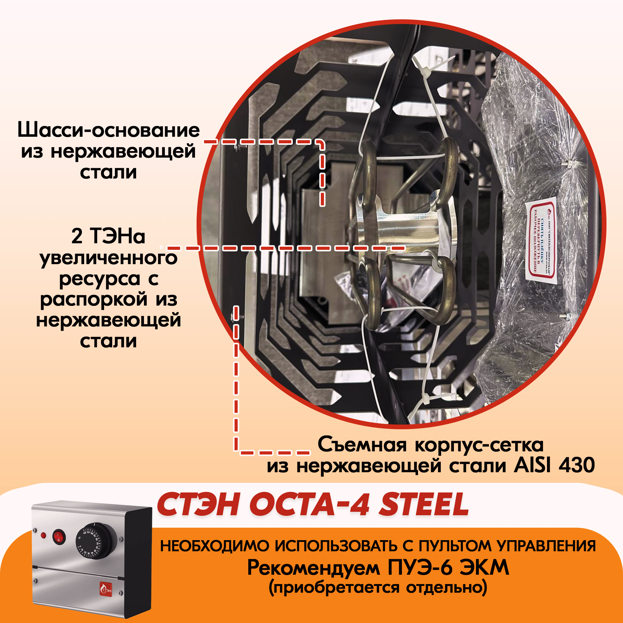 Электрическая каменка СТЭН ЭКМ 4 Octa steel в Новосибирске | Доставка по России