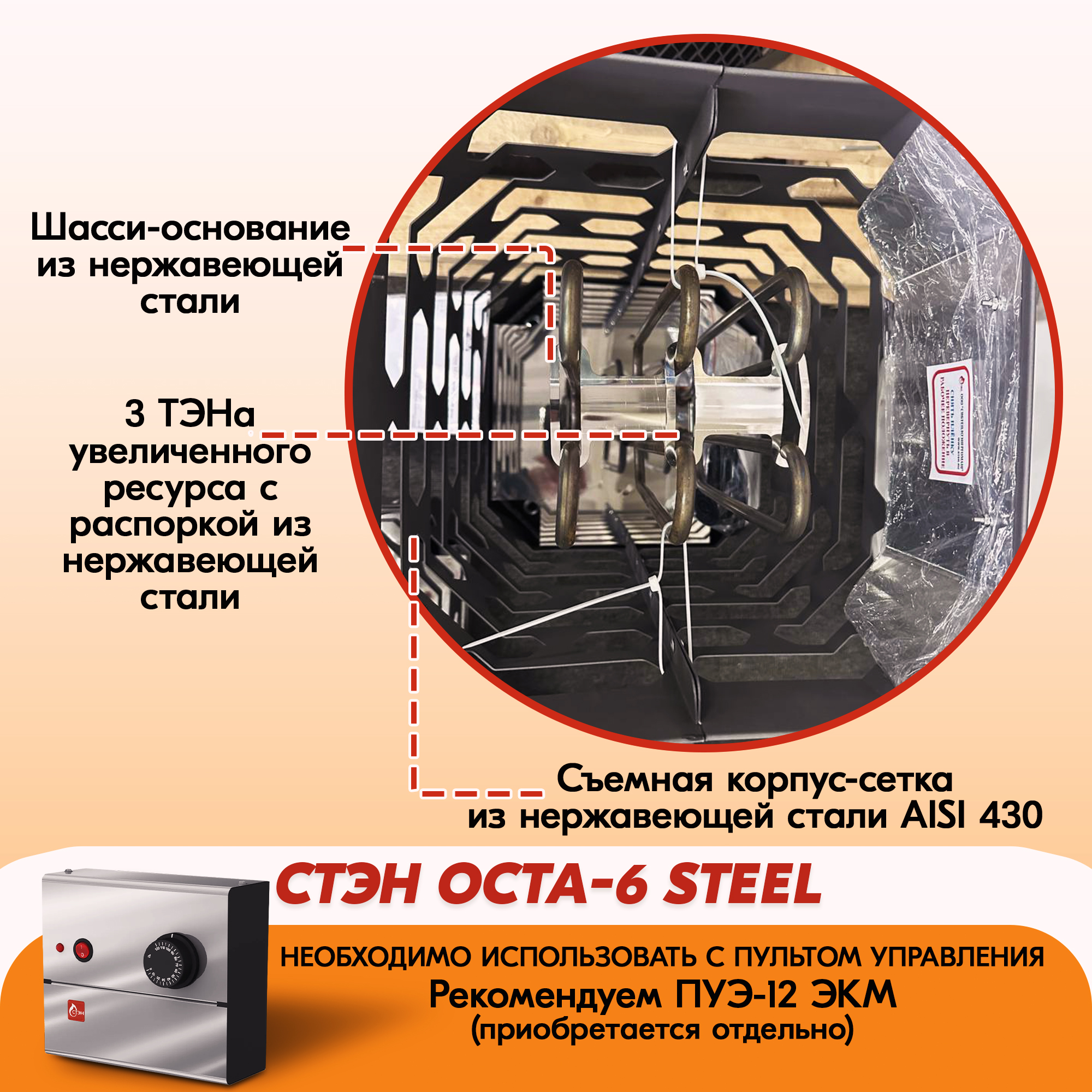 Электрическая каменка СТЭН ЭКМ 6 Octa steel в Новосибирске | Доставка по России