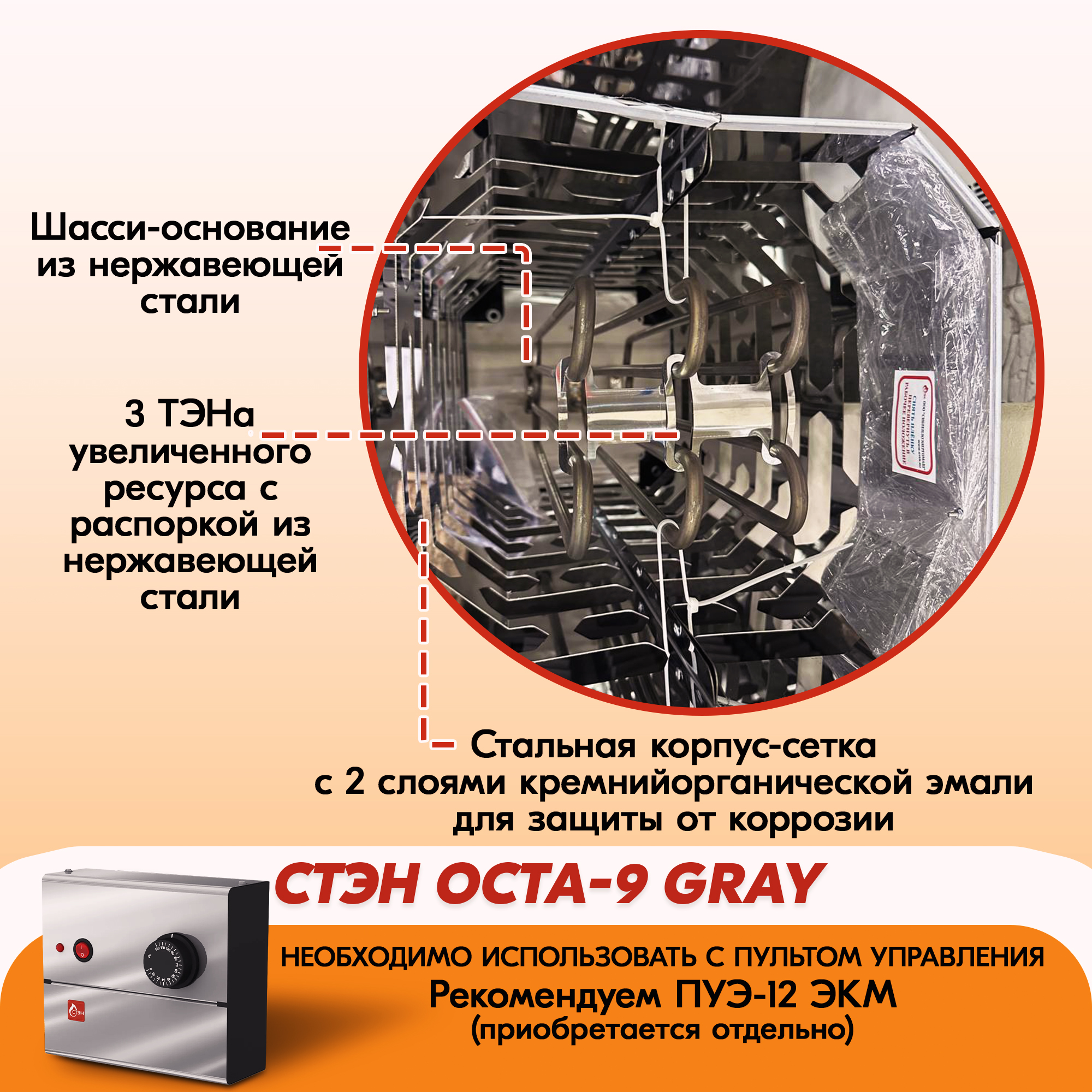 Электрическая каменка СТЭН ЭКМ 9 Octa gray в Новосибирске | Доставка по России