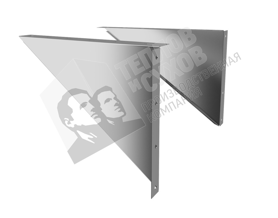 Крепление основное ККО 650 - Является силовым элементом, переносит вес вышерасположенной конструкции на стену здания. Состоит из двух откосов с монтажными отверстиями. Минимальное расстояние от опорной стены здания до закрепляемого на ней дымохода составляет 60 мм. За счет площадки может производится регулировка дымохода относительно опорной стены здания с шагом 80 мм.