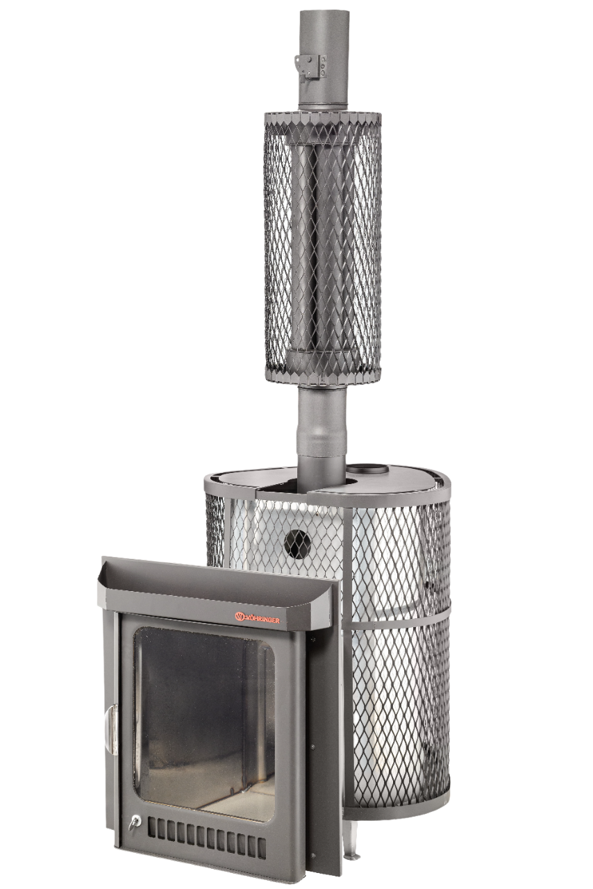 Печи VÖHRINGER с дровяной каменкой, у которой вся топка окружена большой массой камней, сильно разогревается, а дров уходит немного, благодаря полному сжиганию дымовых газов с помощью бокового и верхнего горения. Использование эффекта «Vortex», позволяет извлечь всю энергию и направить её на нагрев большого количества камней.