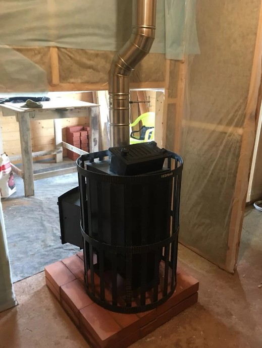 Закрытая каменка изготовлена из стали, вмещает в себя около 60кг камней. В закрытой каменке камни прогреваются быстрее и получается мелкодисперсный пар.