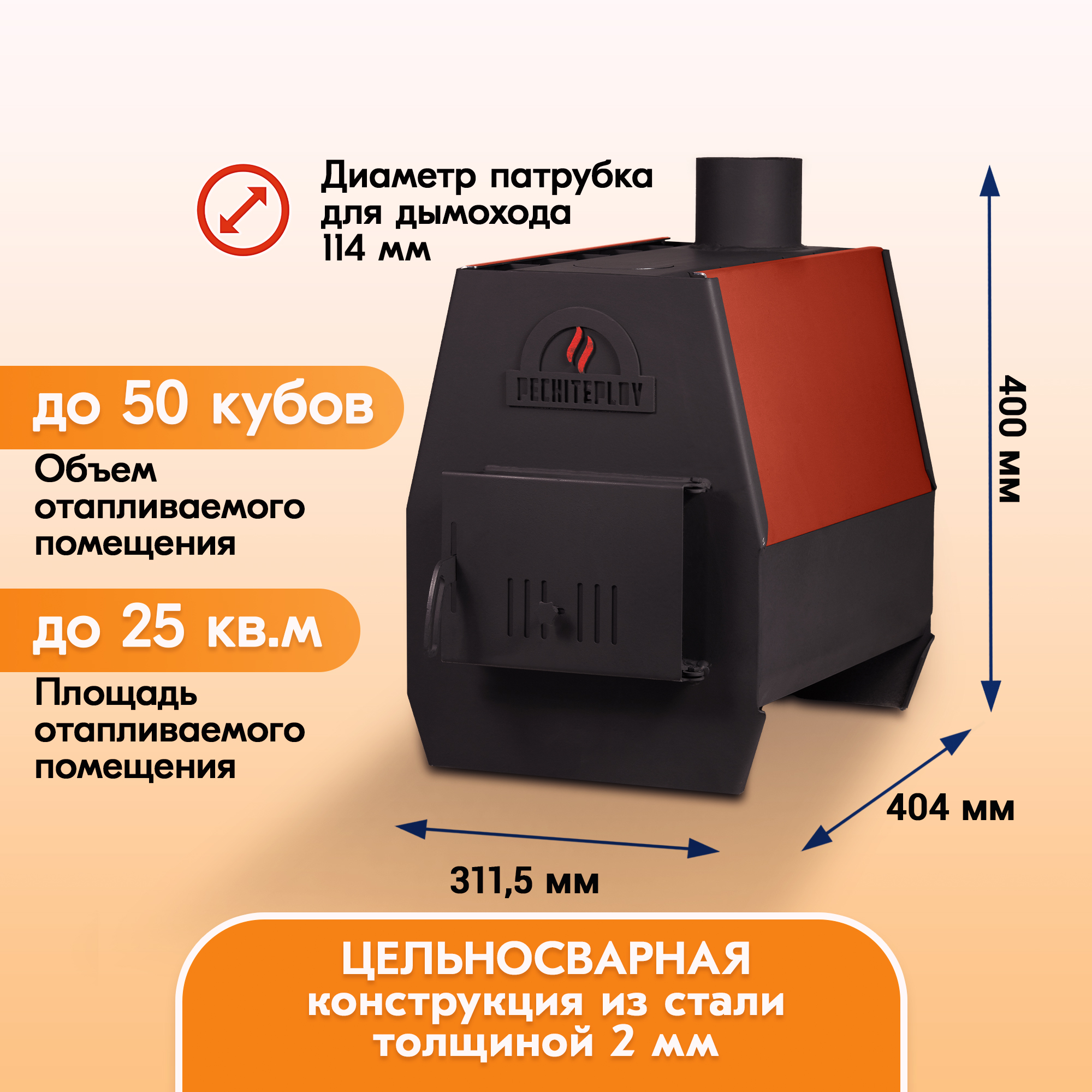Компактная и экономичная печь PECHITEPLOV на 50 или 80 кубов не намного дороже обычной печи буржуйки, но при этом на порядок лучше.