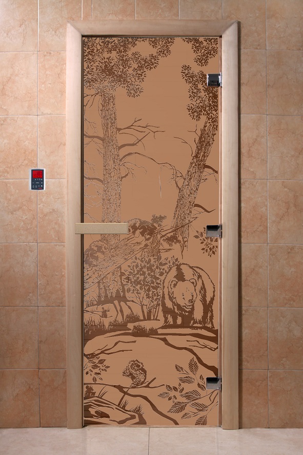 Дверь для сауны "Мишки в лесу" (матовая) 190х70 в Новосибирске | Доставка по России