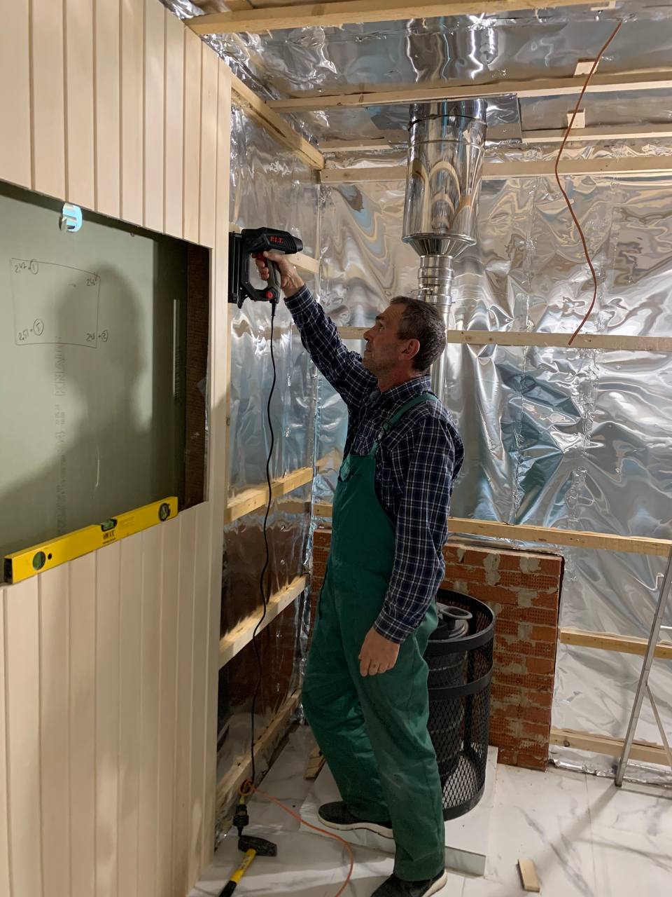 Монтаж банной Печи GFS   установка дымохода, кладка портала