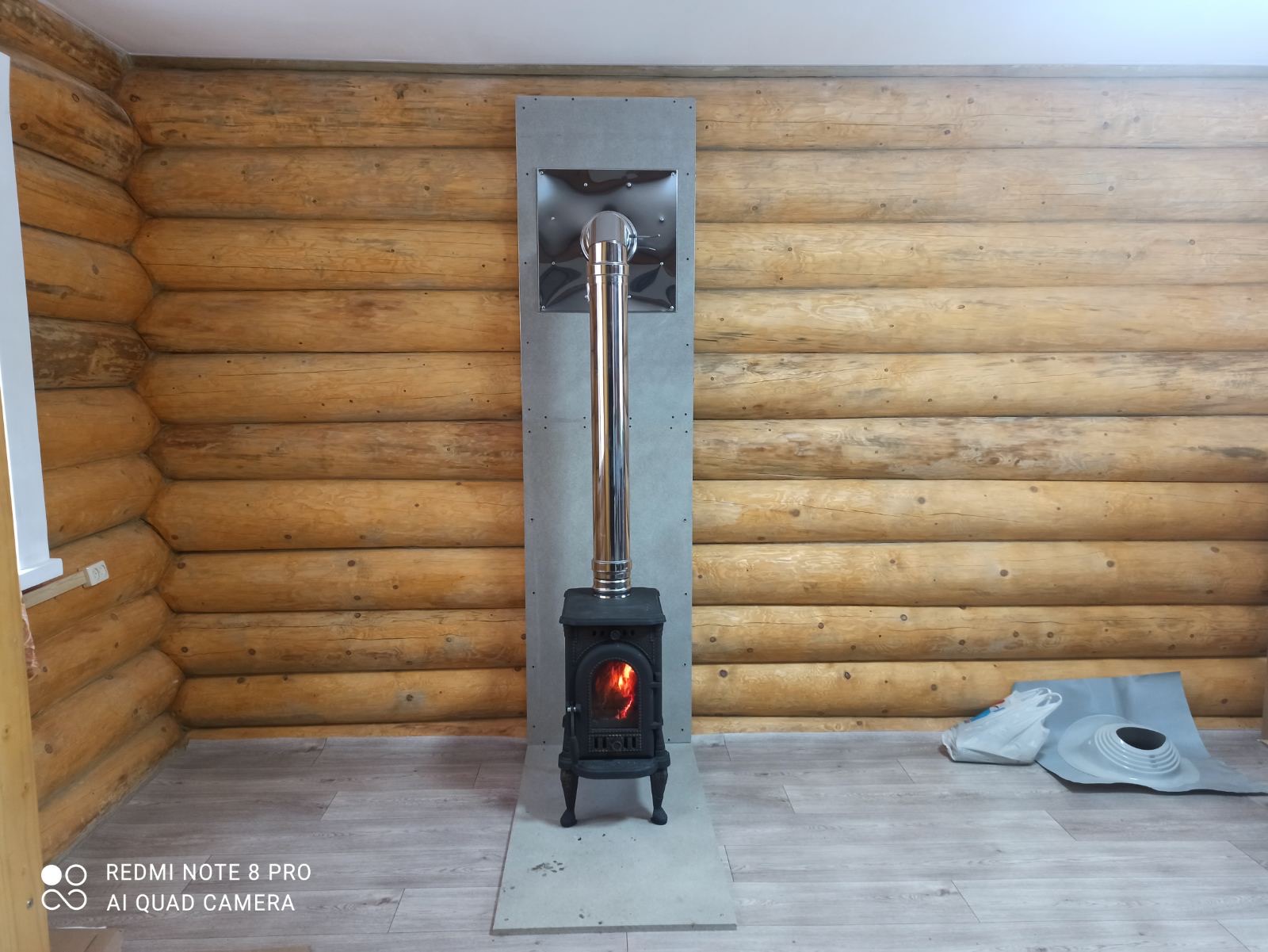 Установка Камина НМК Сибирь-6 и комплект дымохода 5м